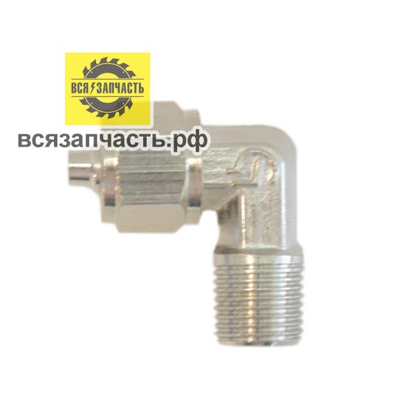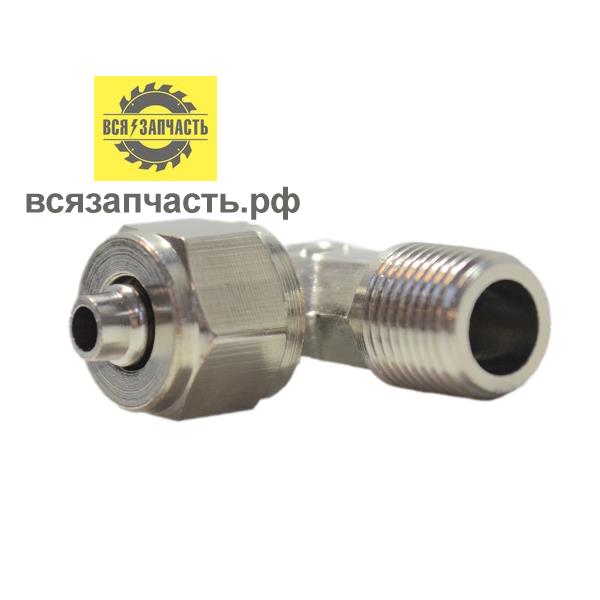 Соединитель уголок пластиковых трубок резьба M1/4 - Ёлочка Ø 6 мм с креплением под гайку - 010411(112)