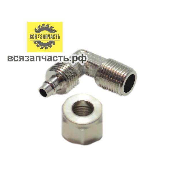 Соединитель уголок пластиковых трубок резьба M1/4" - Ёлочка Ø 6 мм с креплением под гайку
